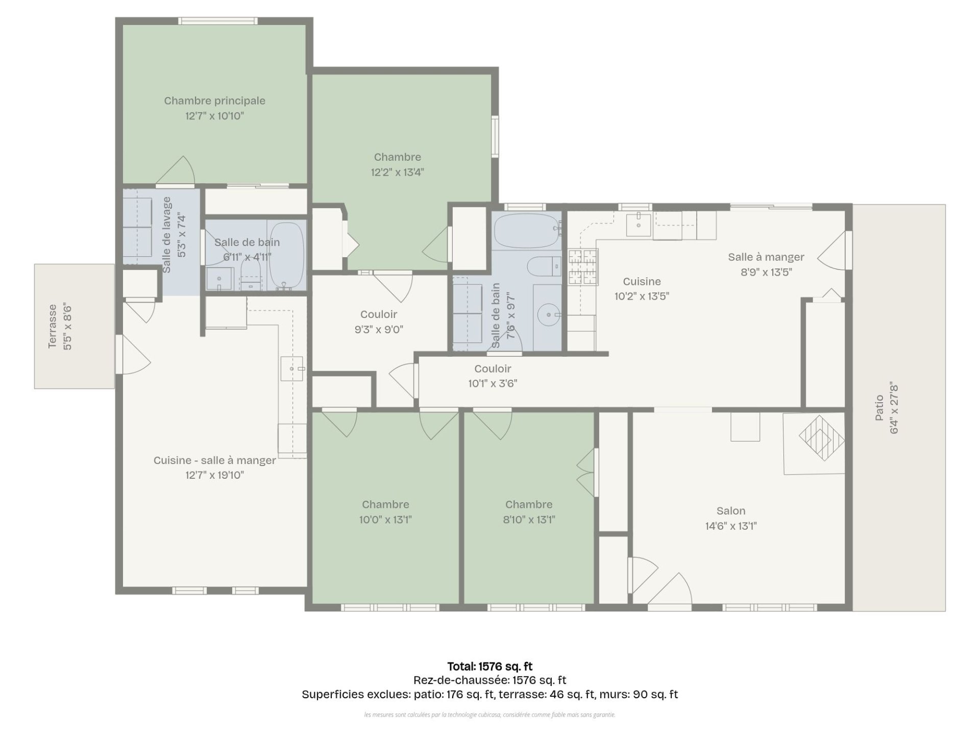 | Salon | 10.0 x 12.6 P | Rez-de-chaussée | Plancher flottant |
